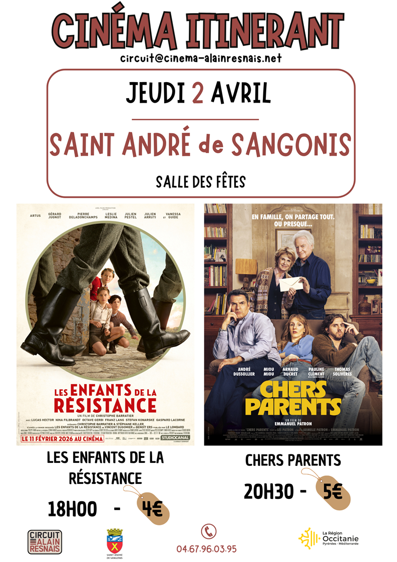 Rendez-vous ce jeudi 2 avril pour votre cinéma mensuel, à la salle des fêtes de Saint-André-de-Sangonis.