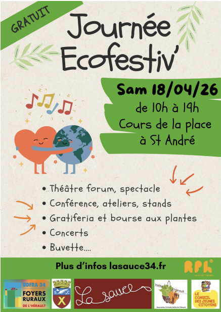 • Dès 10h : gratiferia sur inscription (vide-grenier 100 % gratuit), bourse aux plantes, vente de plants par Hortignac (lycée agricole de la Vallée de l’Hérault), atelier rempotage, atelier de vulgarisation scientifique (qu’est-ce que l’énergie ? Mieux comprendre le cycle de vie de nos smartphones)