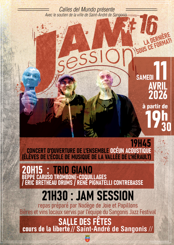 L’association Calles del Mundo, avec le soutien de la ville de Saint-André-de-Sangonis, organise une nouvelle Jam Session, le samedi 11 avril à partir de 19h30, à la salle des fêtes.