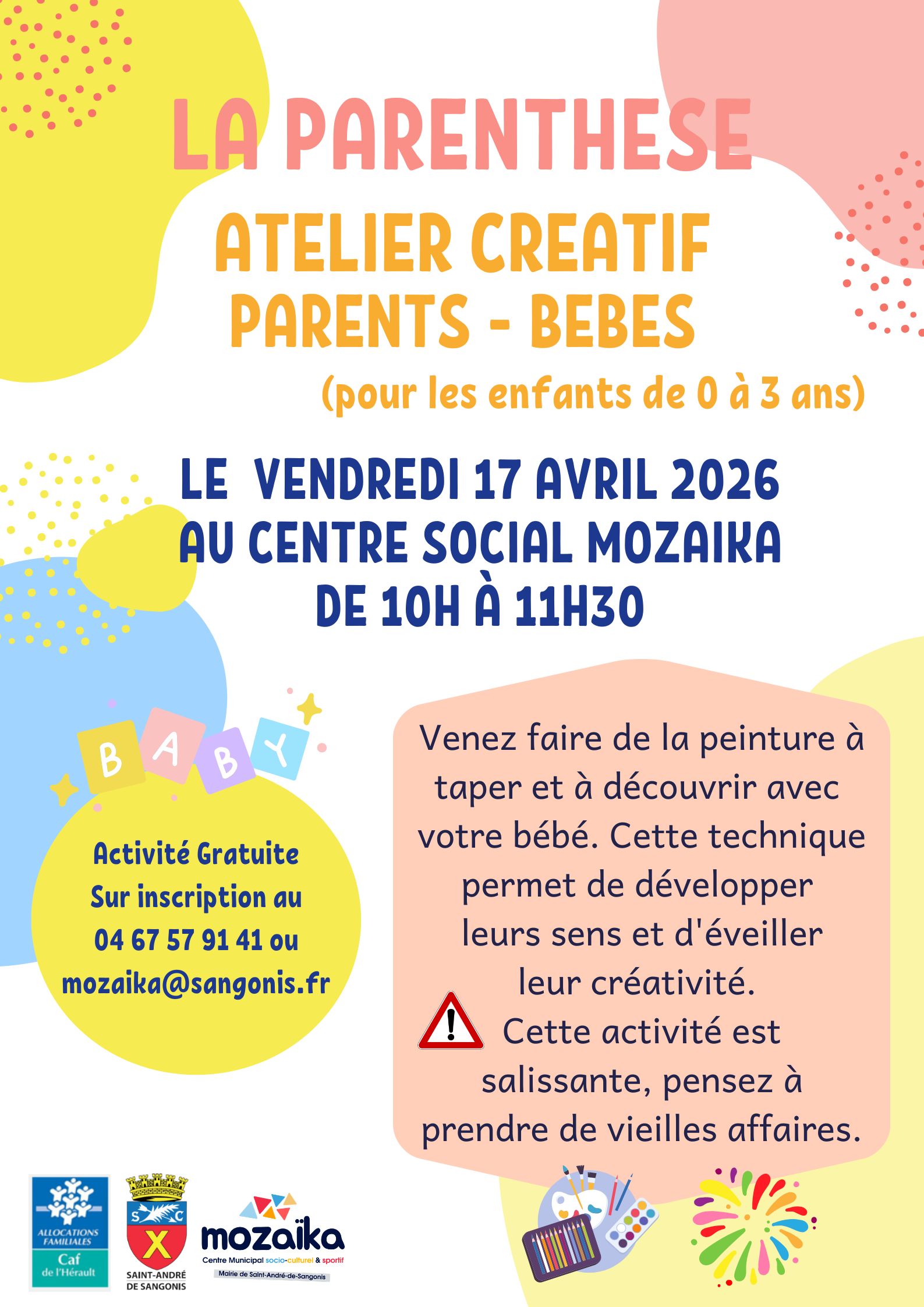 Un atelier dédié aux enfants de 0 à 3 ans accompagnés de leurs parents.