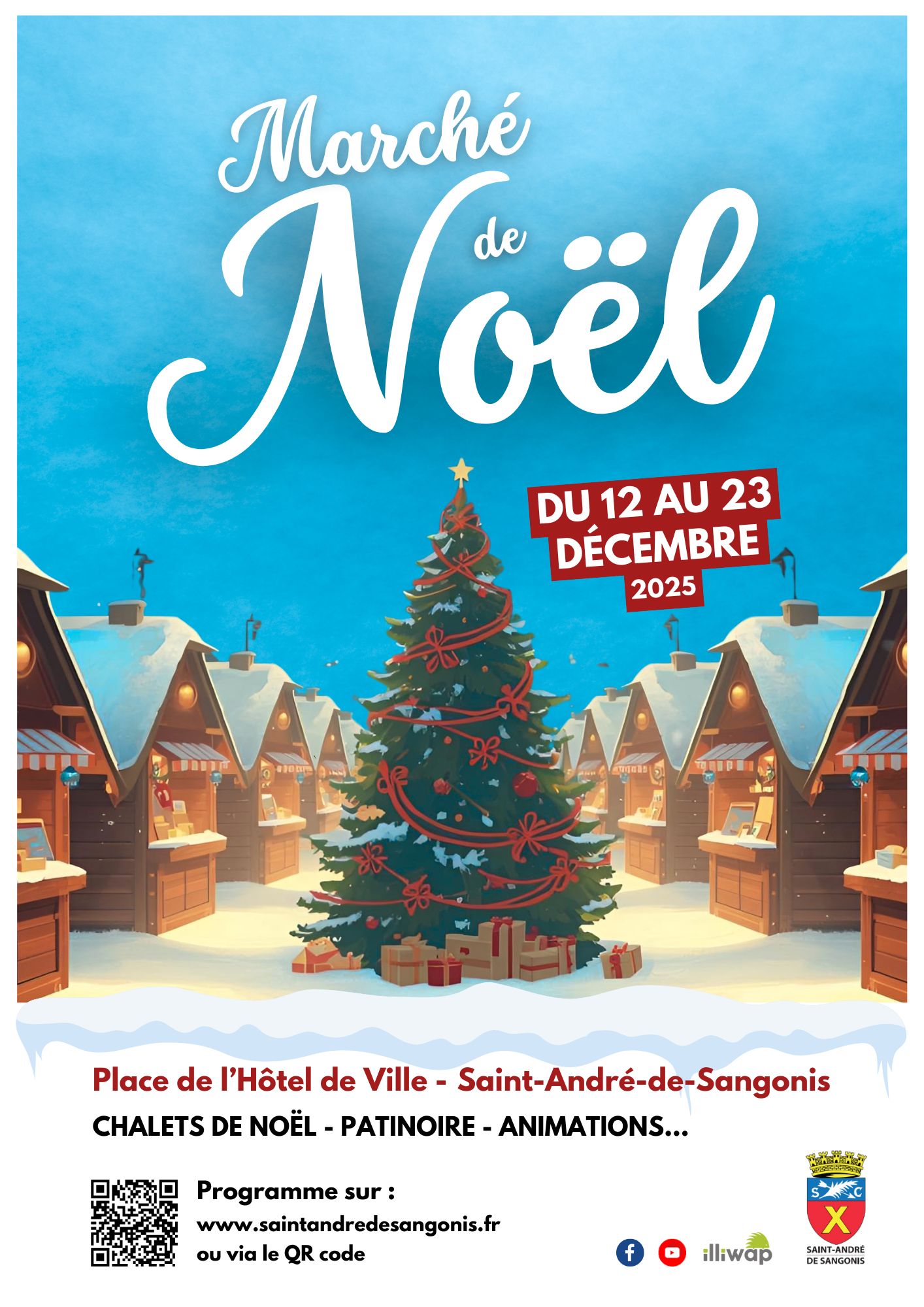 Retrouvez le traditionnel marché de Noël de Saint-André-de-Sangonis du 12 au 23 décembre ! La place de l’Hôtel de Ville va s’animer au rythme des festivités de fin d’année.