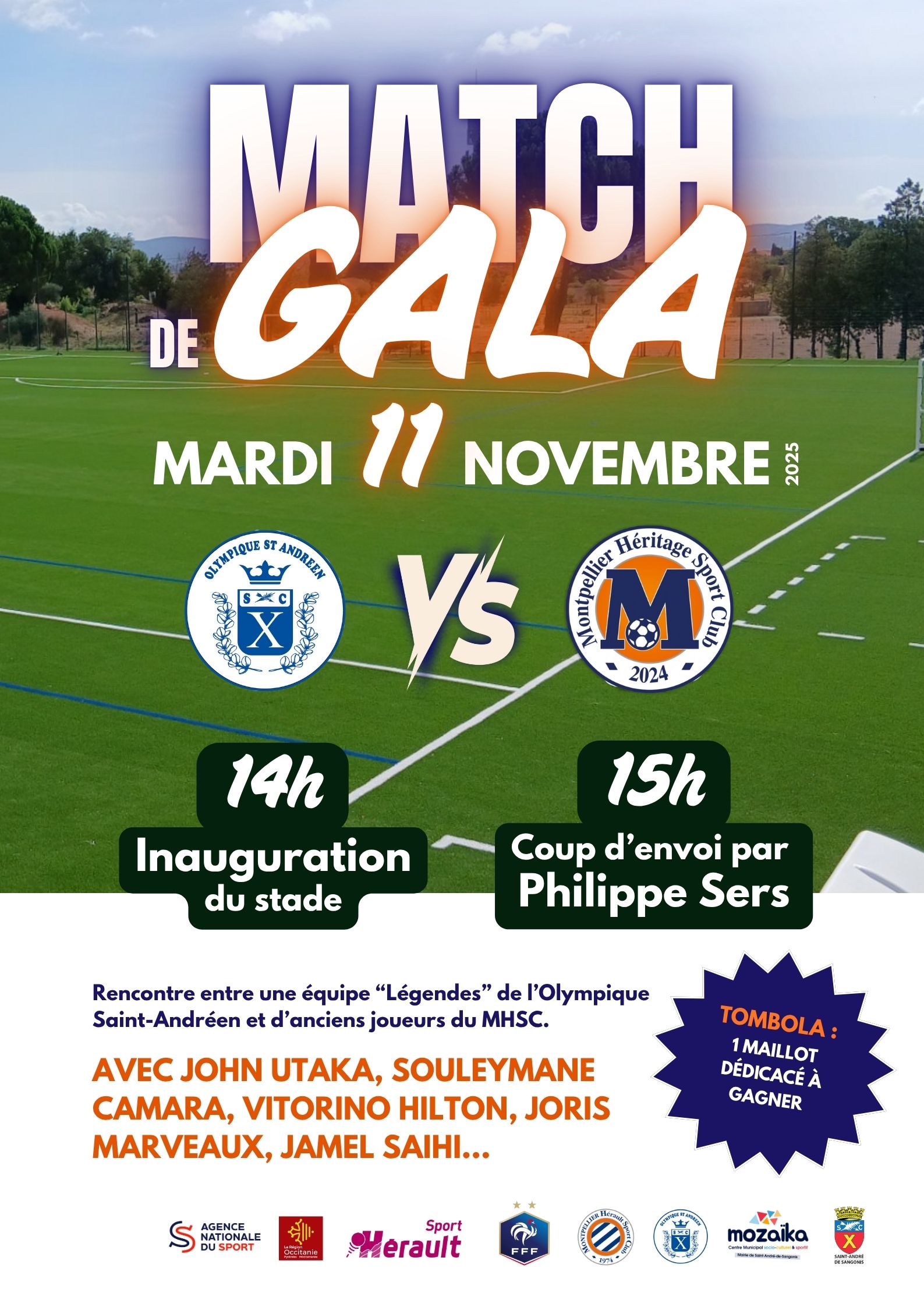 Le mardi 11 novembre 2025, l’Olympique Saint-Andréen accueillera sur son nouveau terrain un match de gala opposant une équipe « Légendes » du club à d’anciens joueurs du Montpellier Hérault Sport Club.